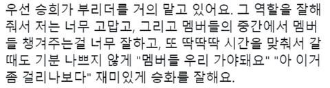 (이외에도 멤버들이 여러번 언급)