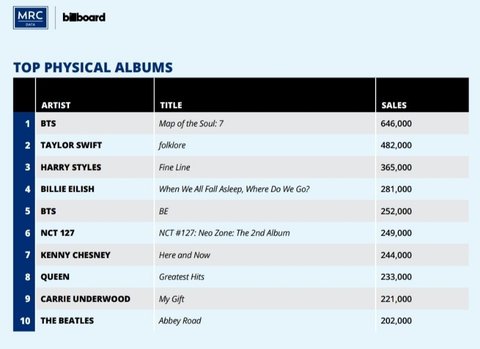 2020 미국 피지컬 앨범 판매량 TOP10