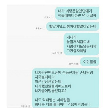 “화내지 말고 욕 하지마 제발” 이라는 등의 문자 내용을 보고 분노를 억누를 수가 없었습니다.