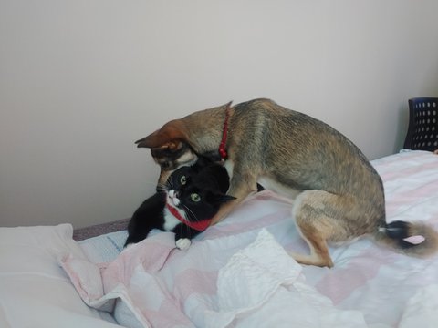 걱정이 되었는지 수술부위를 핥아주려 시도했으나