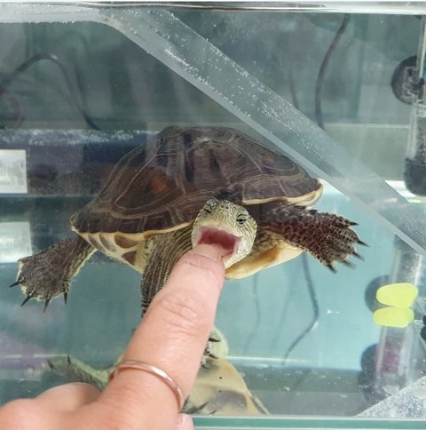 자식이 너무 많은 엄마에요ㅎㅎ 거북이도 키우게된지 벌써 6년정도 된거같네요! 동전 500원짜리만하던 애들이 벌써 남자 손바닥만해졌네요~~~~!!! 가끔 고개를 내밀고 탈출을 시도하기도 해요~~ 둘이 같은 어항에서 키우다가 큰애가 작은애 꼬리를 물어뜯어서 따로 키우게 됐어요~~~ 저만 다가가면밥달라고 물장구치는 애들이 넘 이뻐요ㅎㅎ 거북이 어항케어하는게 보통일은 아니지만 제가 부지런해야 애들이 행복하단 생각을 늘 하면서 힘들어도 하게 되더라구요~~ 친구가 거북이가 웃고있는것같다고 웃는거북이는 첨봤다는 소리듣고 한번 올려봐요ㅎ
