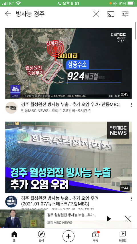 방사능 유출 됐는데 인터넷 뉴스도 별로없고 유튭에서 쳐보면 뉴스가 2개 밖에 안 나옴 심지어 지방MBC임 이상하지않냐 어디서 봤는데 공무원 비리랑도 연관있다고 하고 방사능 추가 오염 우려 있다는데 공론화 되야하는거 아니냐..?나 경주 사는데 하루가 지났는데 방금 알았어 경주시민들도 다 모를걸 우리아빠 뉴스 엄청 많이 보는데 우리아빠도 몰랐어 나도 십 분 전에 앎...