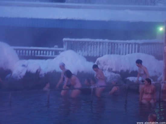 섭씨 영하 23도지만 따듯한 물에 몸을 담그고 나면
