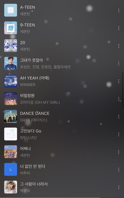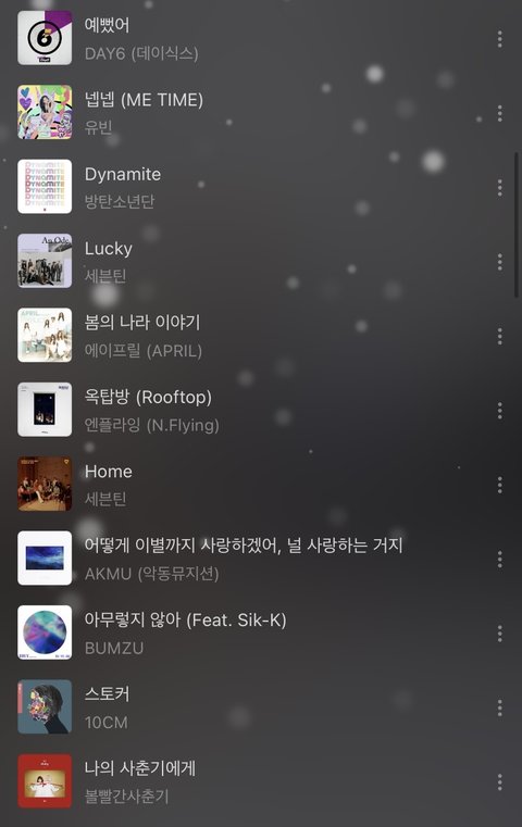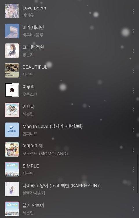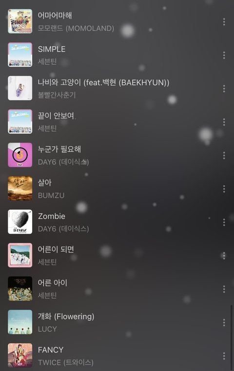 난 나름대로 흐름 따라 잘 해 놓았다고 생각 했는데 내 친구가 왜케 노래가 자유분방 하냐고 하드라..이 노래들 순서나 추가할 노래 좀 알려줘