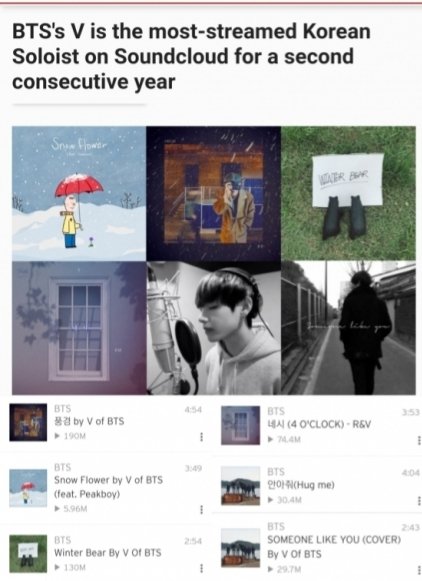 방탄소년단 뷔, 2년 연속 사운드클라우드 가장 많이 스트리밍된 솔로 아티스트