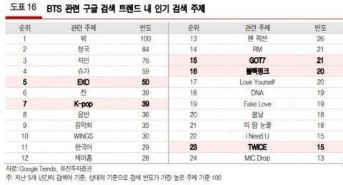 +) 이 그룹들은 최소 6인에서 46인까지 구성된 것에 반해 뷔는 개인으로 일본 자국 연예인들을 꺾고 가장 높은 순위를 기록해 일본에서의 영향력을 짐작케 한다.