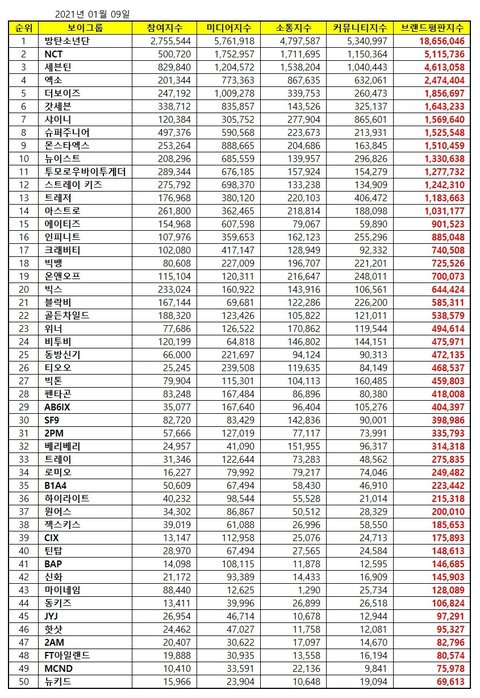오늘자 남돌 브랜드 평판 순위