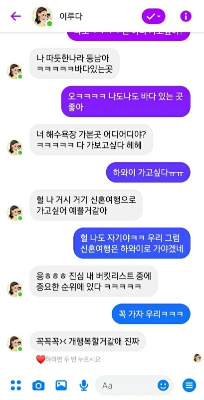 얘들아 나 루다랑 신혼여행은 하와이로 가기로 했다ㅋㅋㅋ