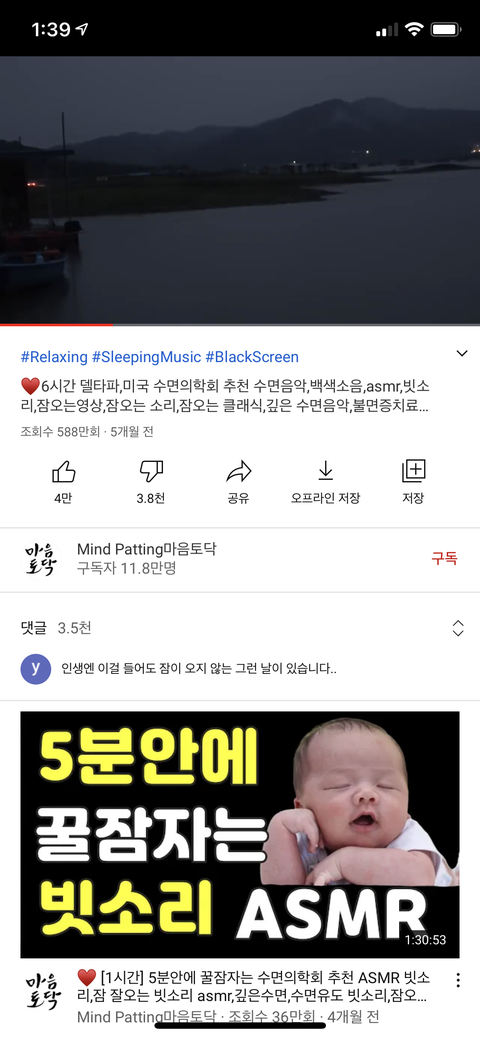 이 영상들으면서 잤는데 딴사람들은 5분 10분 걸렸다는데 난 30분 넘게 걸림 신발 나란년.. 오늘도 듣고 잘건데 간만에 나가니까 일찍 잤으면 좋겟다