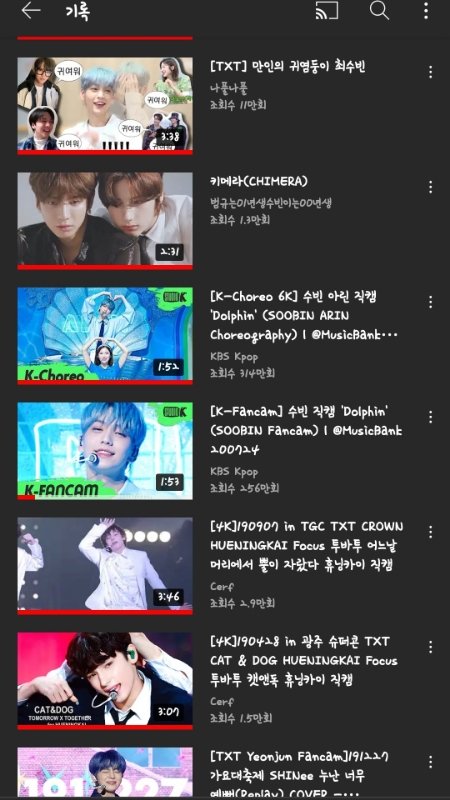 그저 덕질용... 시청기록이 온통 투바투뿐임