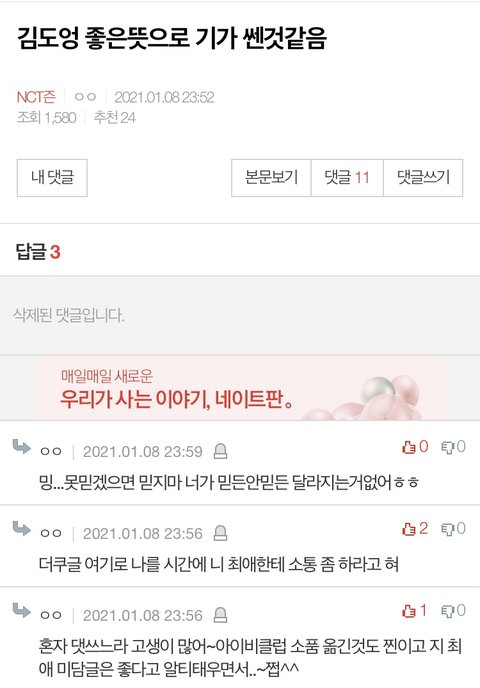 인증없는글 지적에 니최애 소통이나 해라(?)