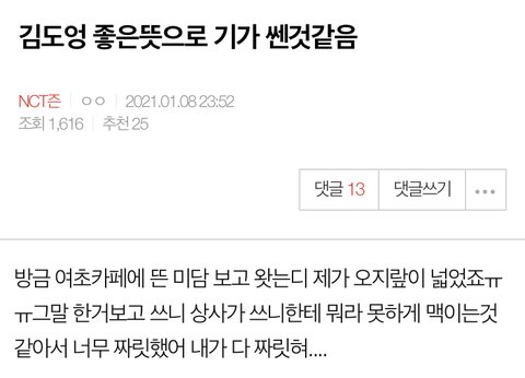 설명 : 인증없는 여초 미담글로 앓아서 지적댓 두개정도 달림