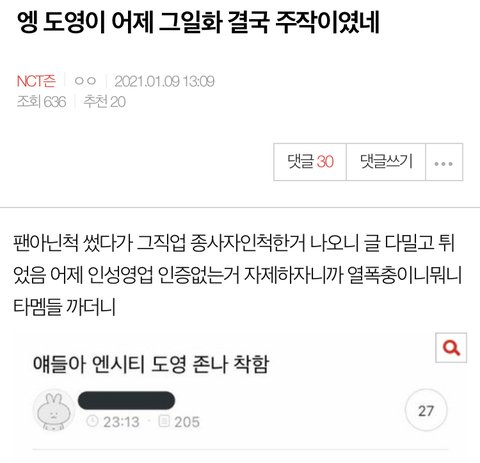 이건 결국 직원도 아니면서 종사자인척한거에 도용에 원래 팬인거 걸려서 글쓴이 다 지우고 튀어버린글