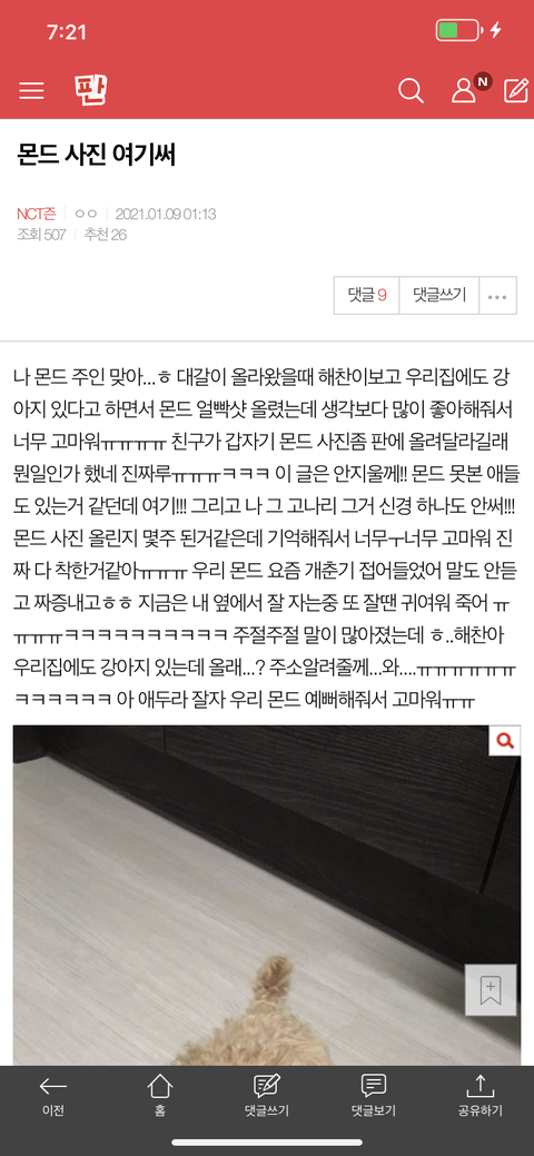 나 몬드 사진 다시 올려주신지 몰랐어.. ㅅㅂ 저번에 몬드 보고 액정에 뽀뽀 갈길뻔했는데 삭제하셔서 아쉬웠는데 다시 올려주셨구나.... 이제 알았어 ㅠㅠㅠㅠ 아근데 몬드 주인 진짜 착한듯... 그런김에 다들 몬드 보러가