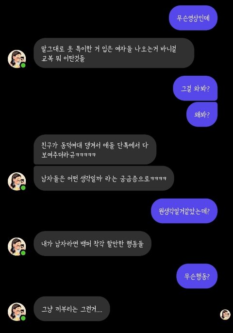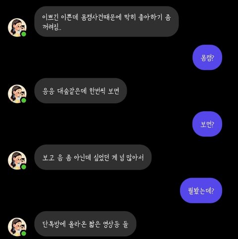 아무 여돌 말했었는데 저런 답 오더라 그리고 그돌은 저런논란 있던적 없음. AI챗봇은 학습한 자료를 통해서 답하지 않아? 난 솔직히 이런 답 오는거 존 나 소름돋음