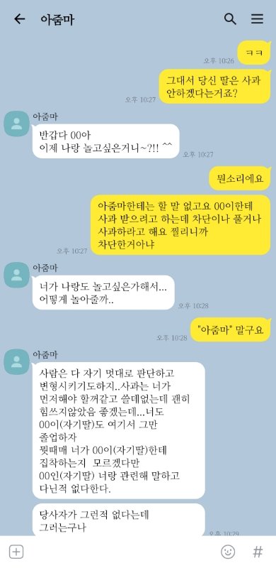 전 사과도 못받고 욕만 들어서 문자로 사과 안하겠다는 거냐고 물어봤습니다.