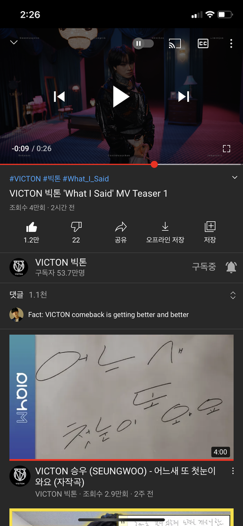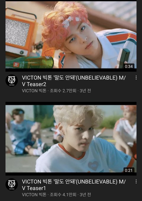3년 전 빅톤의 뮤비 티저 조회수=현 빅톤 뮤비 티저 조회수