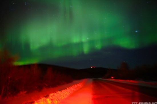 약간 이동을 하여 아름다운 오로라를 발견하였습니다.