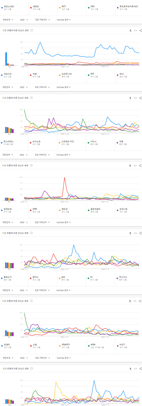 2020년 국내 유튜브에서 가장 많이 검색된 남자아이돌그룹 TOP30
