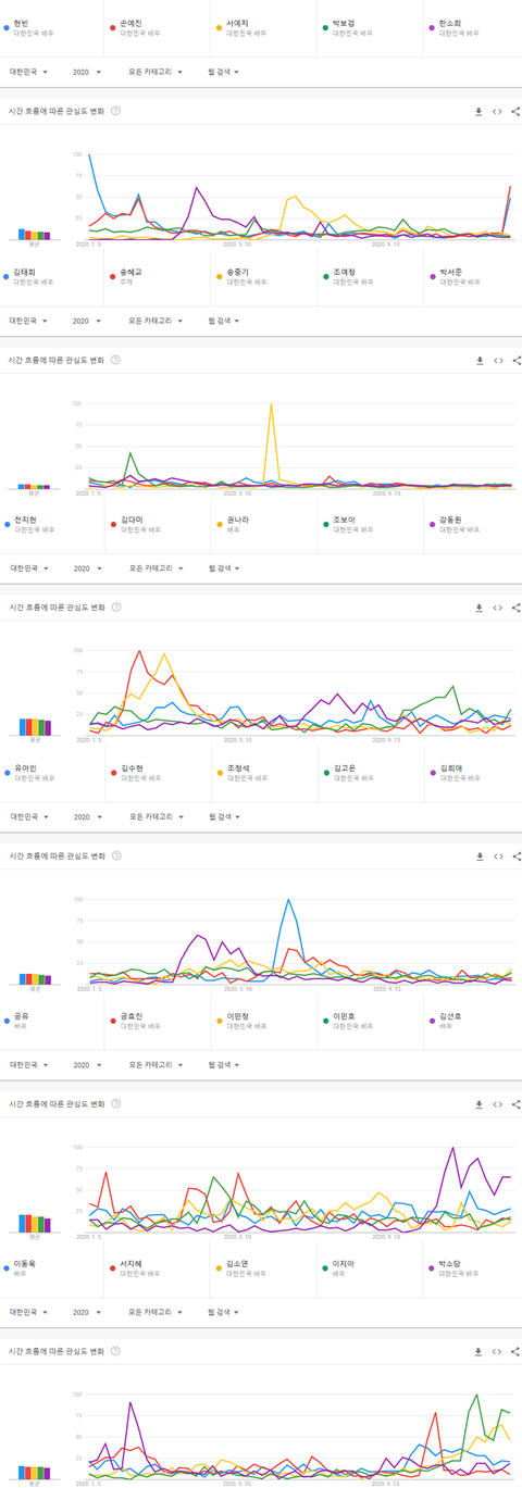 2020년 국내에서 가장 많이 검색된 배우 TOP30