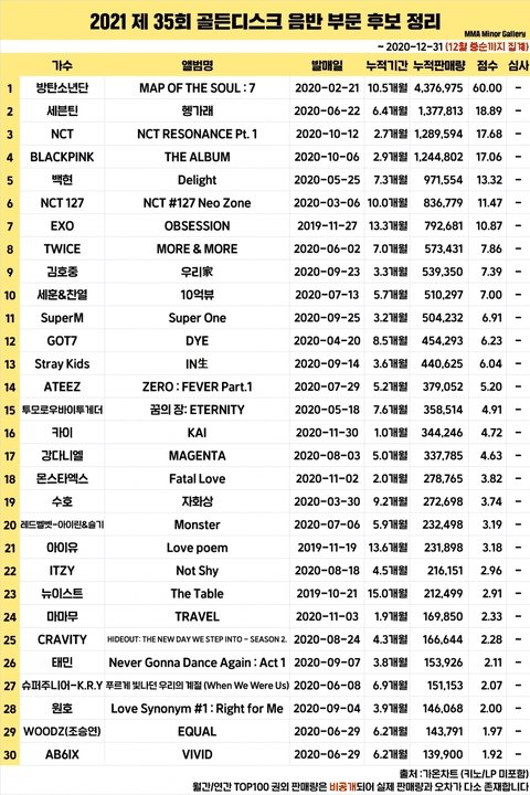 표를 보면 수치산정방식이 1위(약 400만)만점으로 환산하는 방식임. 그러다보니 김호중-투바투는 점수차이가 3점정도임수밖에없음(음원논란은 35점차) 심사로 뒤집기 쌉가능임