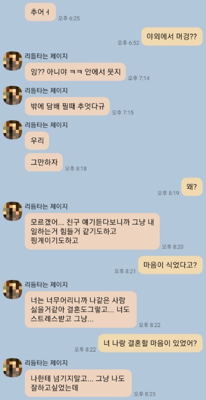 그동안 두번 더 헤어지자했었는데 그때는 제가 바로 잡았고 바로 잡혔어요