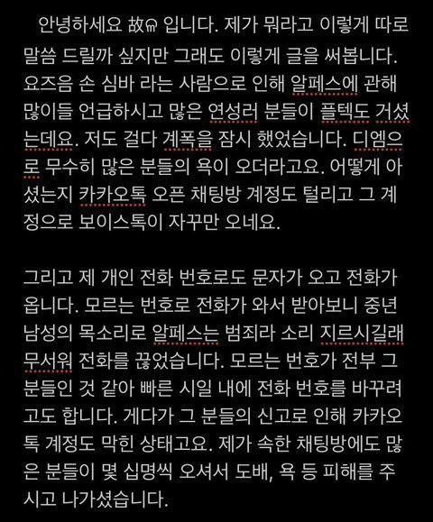 근데 내가 이분 알거든 같은 옵채에 있었는데