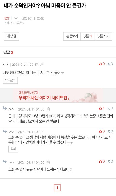 사진은 내가 대댓 달았는데 동시에 나랑 똑같은 대댓 달렸길래 신기해서 ㅎㅎㅎㅎ