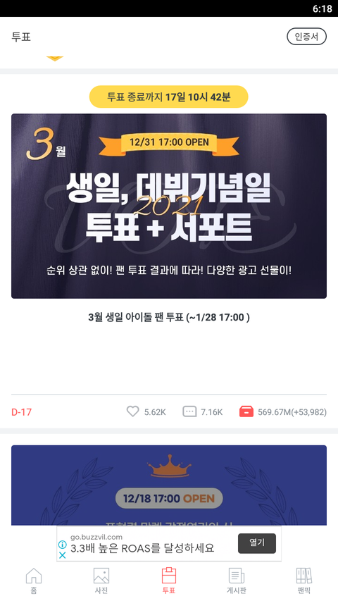 순위 상관없이 300만표 투표하면 광고 가능한데