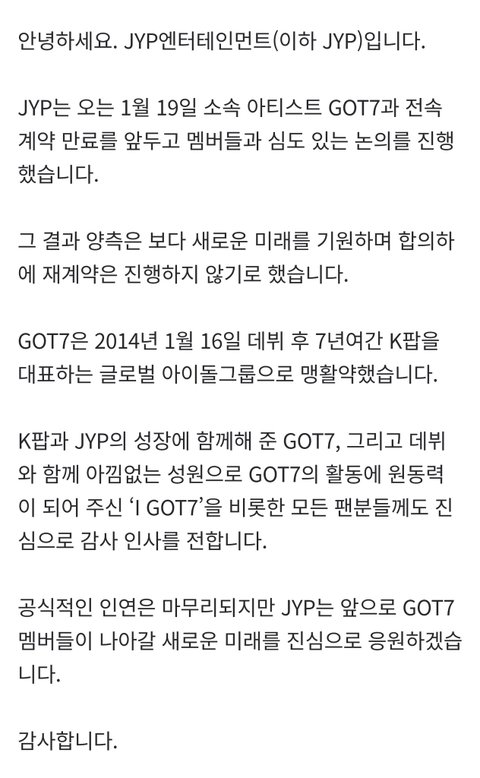 JYP는 현재 멤버 각자의 이적은 확인이 어렵다며, 재계약 관련 입장을 정리하는 중이다.