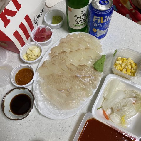 깨알 흔커 흔술입니다 ㅋ _ ㅋ 역시나 회로 마무리!  회는 맛있었는데 양이 쫌 아쉬웠지만 KFC치킨이랑 같이 먹으니 딱 좋았어요