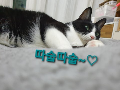길냥이인듯 하지만 저곳에서 돌봄받는 어여뜻한 저구역 냥이님이십니다... 길냥이시면 모셔올뻔......ㅠㅠ 너무 애교가 많으셔서 반해버렸음요~^^