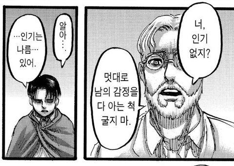 지크리바 리바지크.. 얘네 한 대씩 주고 받는게 ㅈㄴ 웃김 ㅋㅋㅋㅋㅋ 리바이가 진심으로 극혐하는 것 같아서 더 웃김