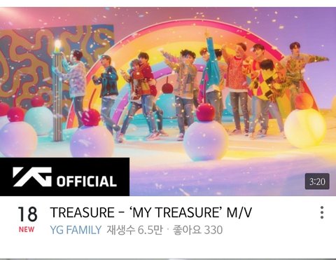 네이버티비 뮤비순위 18위야 ! 더 올라가서 많이 사람들이 트레저 접할 수 있게 한번씩 보자 !! 좋아요도 필수 !!!