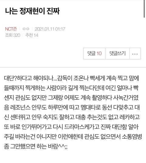 스텝도 주변인도 다 성격 착하고 예의바르단 후기뿐에 오프뛴 수니들 다 정재현 찬양하고 오프팬 조온나 개많은데 매일 꿔보가 조작하고 구라들켜서 계폭하는거도 ㄹㅇ신기 인기많은게 죈가봄