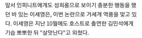 니네 진짜 도라이들이야? 이세영이 성추행 한 거랑 별개로 니네 외모평가 ㅈㄴ심하다 이미 쌍수한 사람한테 전이 낫다느니 해봤자 어쩔건데 다시 되돌릴 수 있는 것도 아닌데 저 사람이 쌍수하기 전에는 쌍수해라는 악플 ㅈㄴ듣더니 하고나니까 전이 낫다 ㅇㅈㄹ 외모비하 좀 작작해라