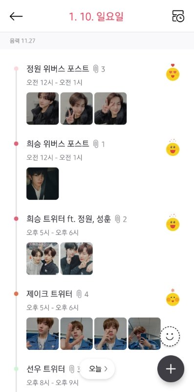 내 최애만 기록하는 소통달력(?) 1월 달 사진이랑 엔하이픈 1월 10일자 소통 기록한 사진들만 풀고 안녕 할게~ 안녕~~ 우리 모두 즐덕하자