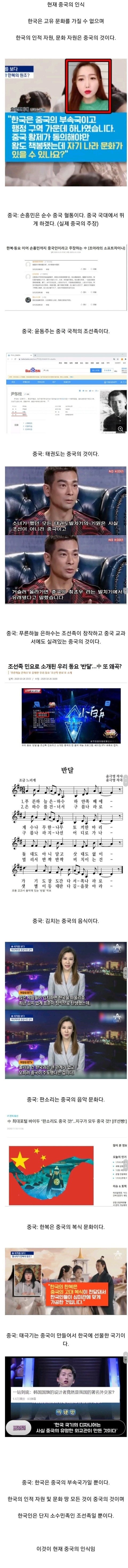 요즘 짱개들이 가지고 있는 한국인식이래