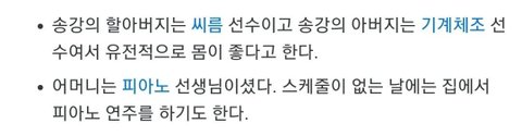 송강의 할아버지는 씨름선수,