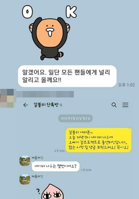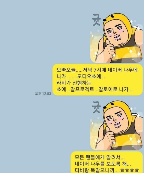 팬클럽 회장 : 갈블리 여러분! 오빠가 ㄴㅇㅂ 나우에 나와요~~