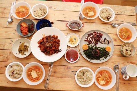 문어볶음.해물밥.문어숙회,콩나물두부국