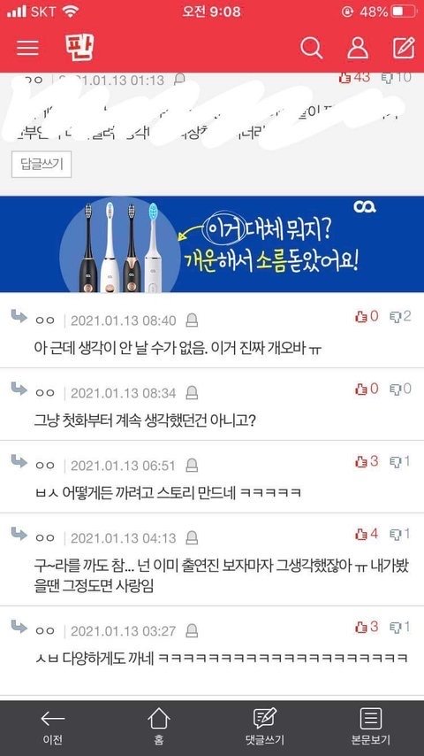 +)뭐야 나 댓삭 안 했는데 왜 댓삭 됨?? 이런 경우도 있나 왜 이러는지 아는 사람