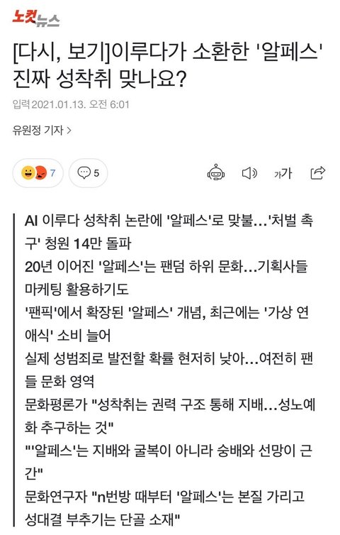 알페스가 만약 법에 저촉되게 된다면 한남들이 소비하는 딥페이크, 여돌 노출움짤, 직캠 성희롱도 다 잡혀감.