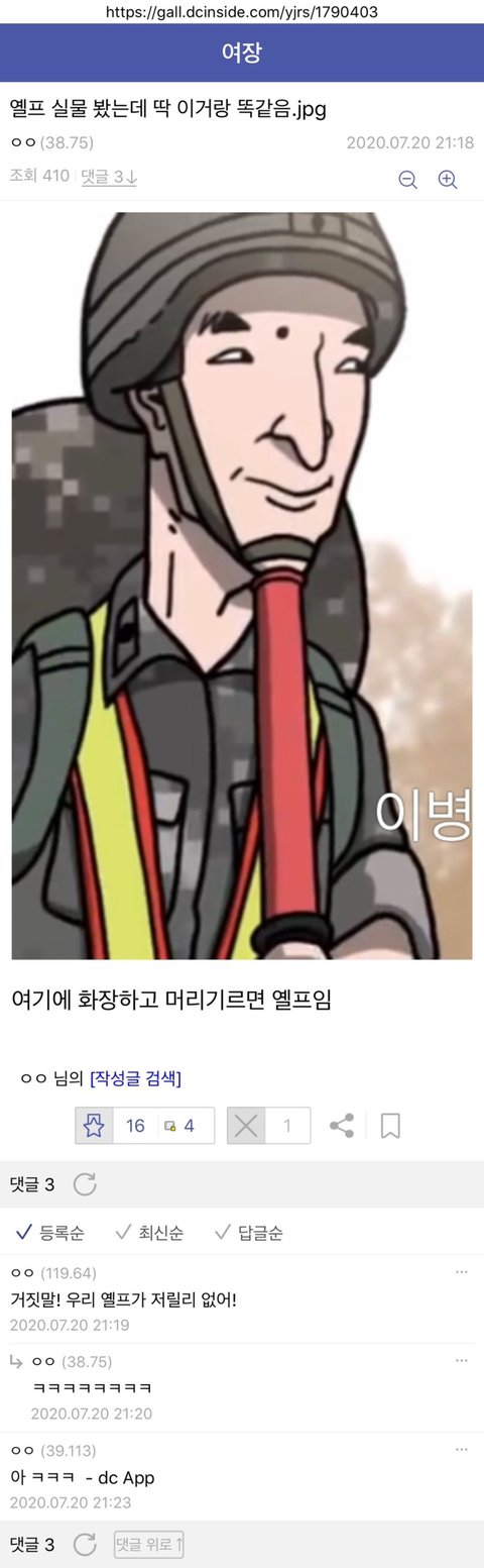 yelp배명진(남연갤 여연갤 주디) 어그로질 무시해 지 얼굴 저격글 올라오자 위에서 계속 자작글 자아분열중