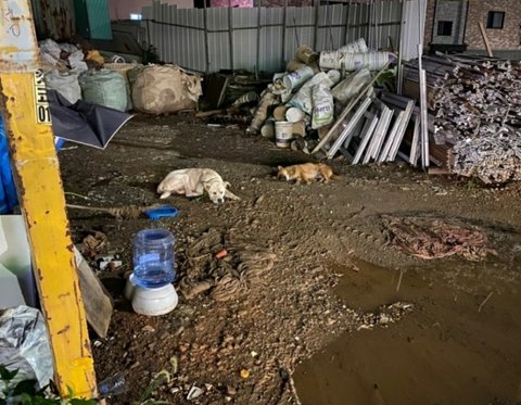 이사한 공장 근처에 유기견이 보이기 시작함..