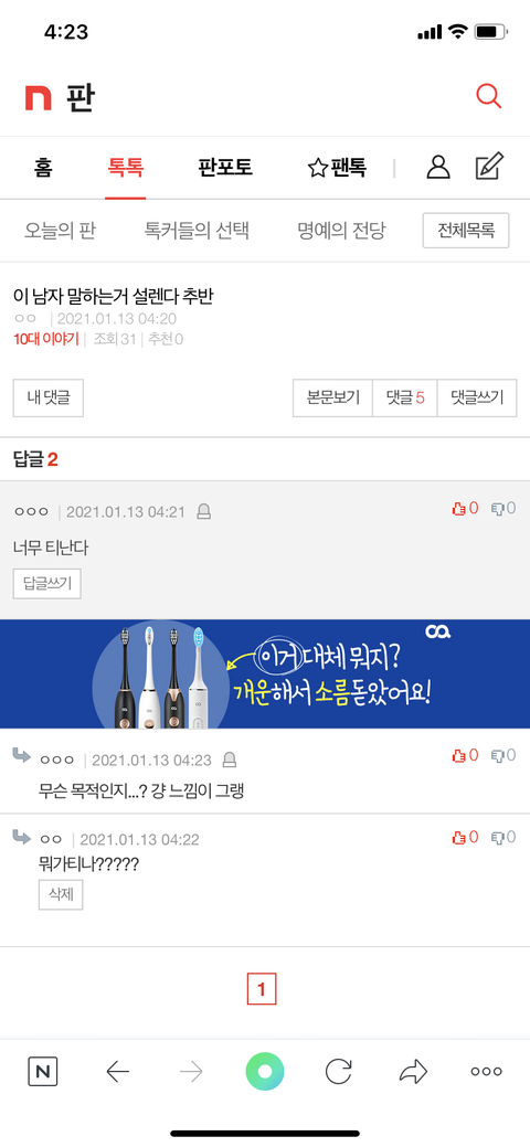 댓글 많은 톡