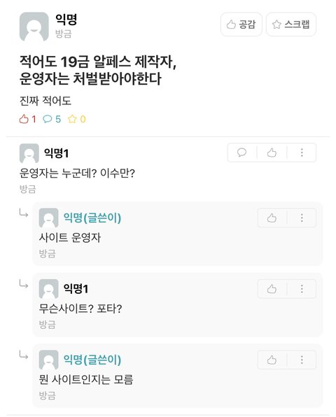 알페스 제작자 운영자 처벌ㅋㅋㅋㅋㅋㅋㅋ