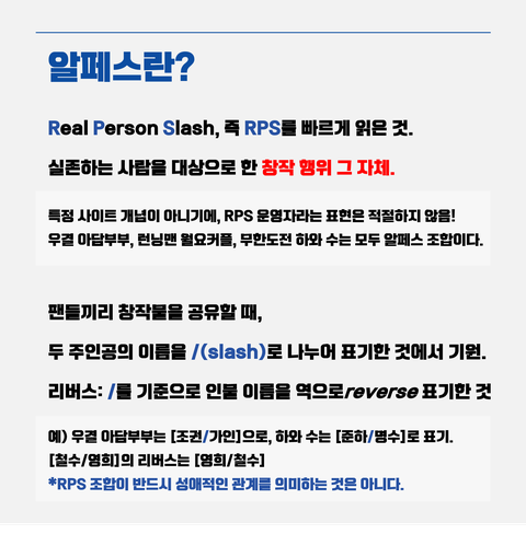말이 와전돼서 미자 남돌로 역겨운 게이소설쓰는 변태성욕자 모임인걸로 알려졌는데 알페스가 팬픽임.. 남돌한테만 그런다기엔 여돌페스도 있고 사람들도 성인미자 같은 그룹이면 미자멤은 최대한 안엮으려고 노력함