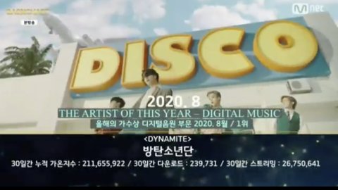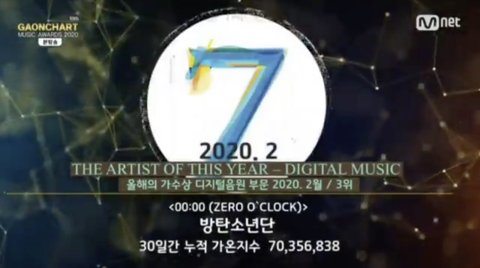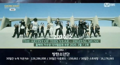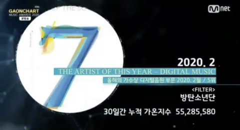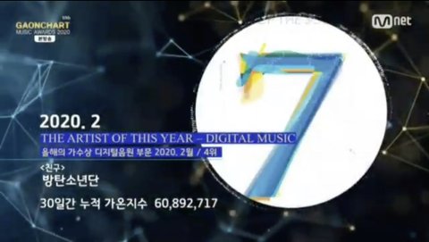 올해의 가수상 디지털 음원부문 20년 8월 1위