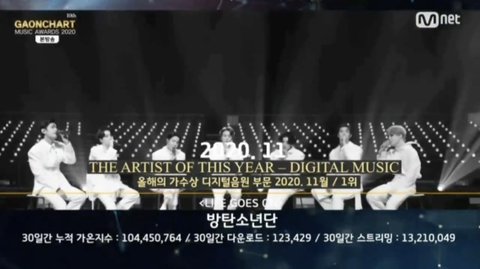 올해의 가수상 디지털 음원부문 20년 11월 1위